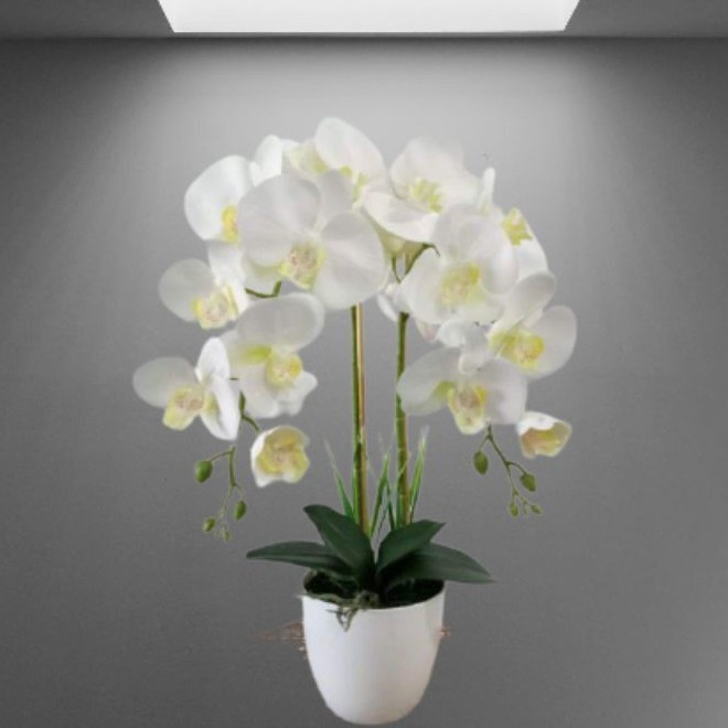 Gubahan Bunga 2 tangkai Orkid Latex 3D dengan Pasu Sumber : ffmomshop.com